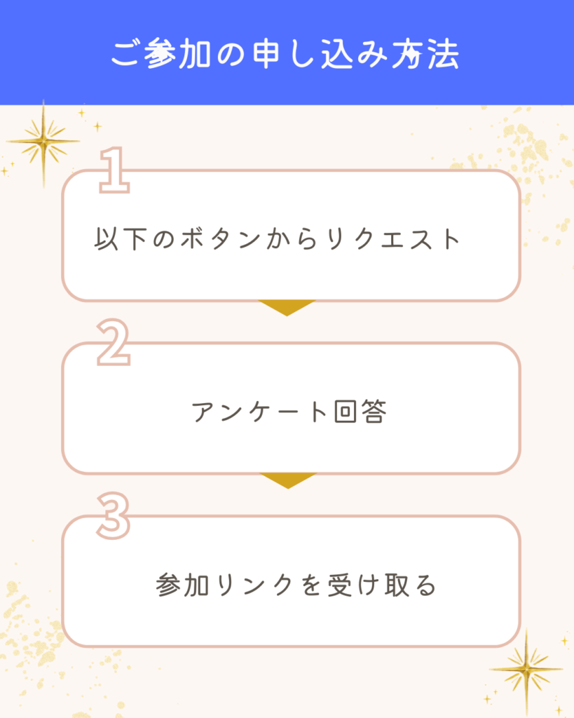 🌸初めての方でも安心してご参加いただけます。ほとんどの方がお一人での初参加です。特別な準備や知識は必要ありません。安心してご参加いただくため、簡単な事前確認をお願いしています。